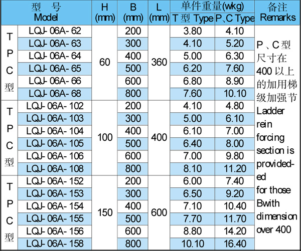 產(chǎn)品名稱:LQJ-06AT、P、C型鋁合金垂直上彎通